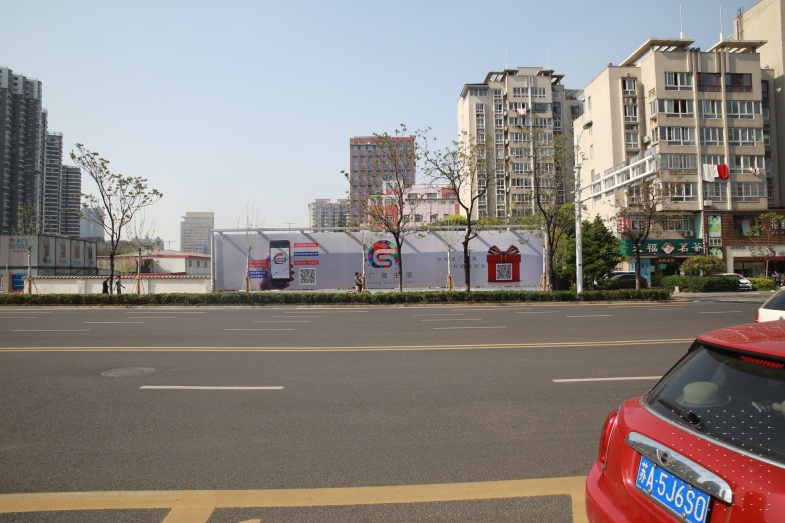 草场门大街与江东北路交汇处落地大牌